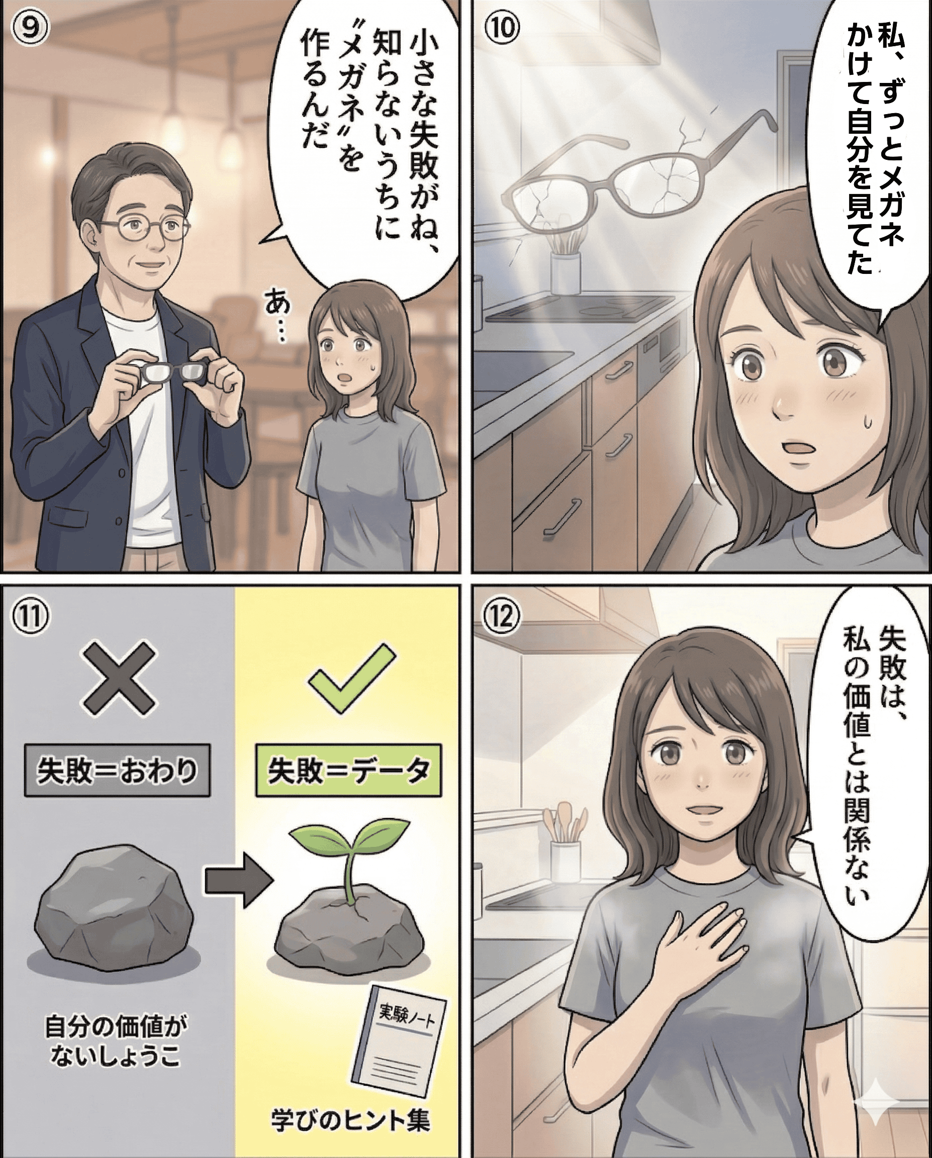 「失敗は私の価値とは関係ない」——この一言が、メガネの存在に気づかせてくれる鍵なんですよね。