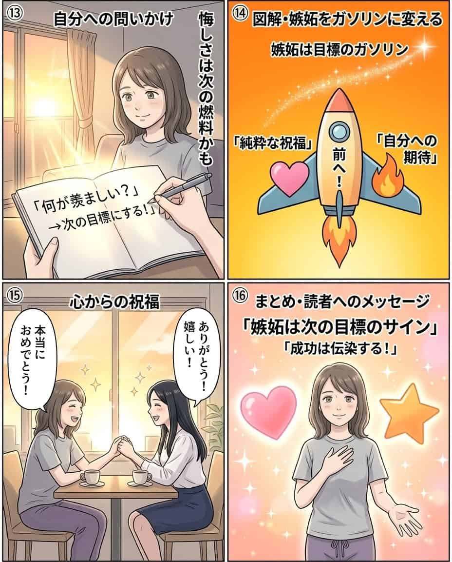 嫉妬は目標のガソリン。「純粋な祝福」はそのまま相手に届けて、「自分への期待」はロケットの燃料にする——ふたつを別々のエンジンとして使えばいい。